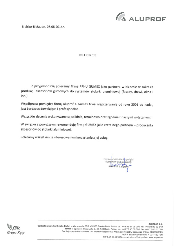 Zaufali nam: Naszym strategicznym partnerem jest firma ALUPROF S.A. Na stałe współpracujemy też z firmami: AWATECH, ALUPROF Złotów, POWERMED, MOVITECH